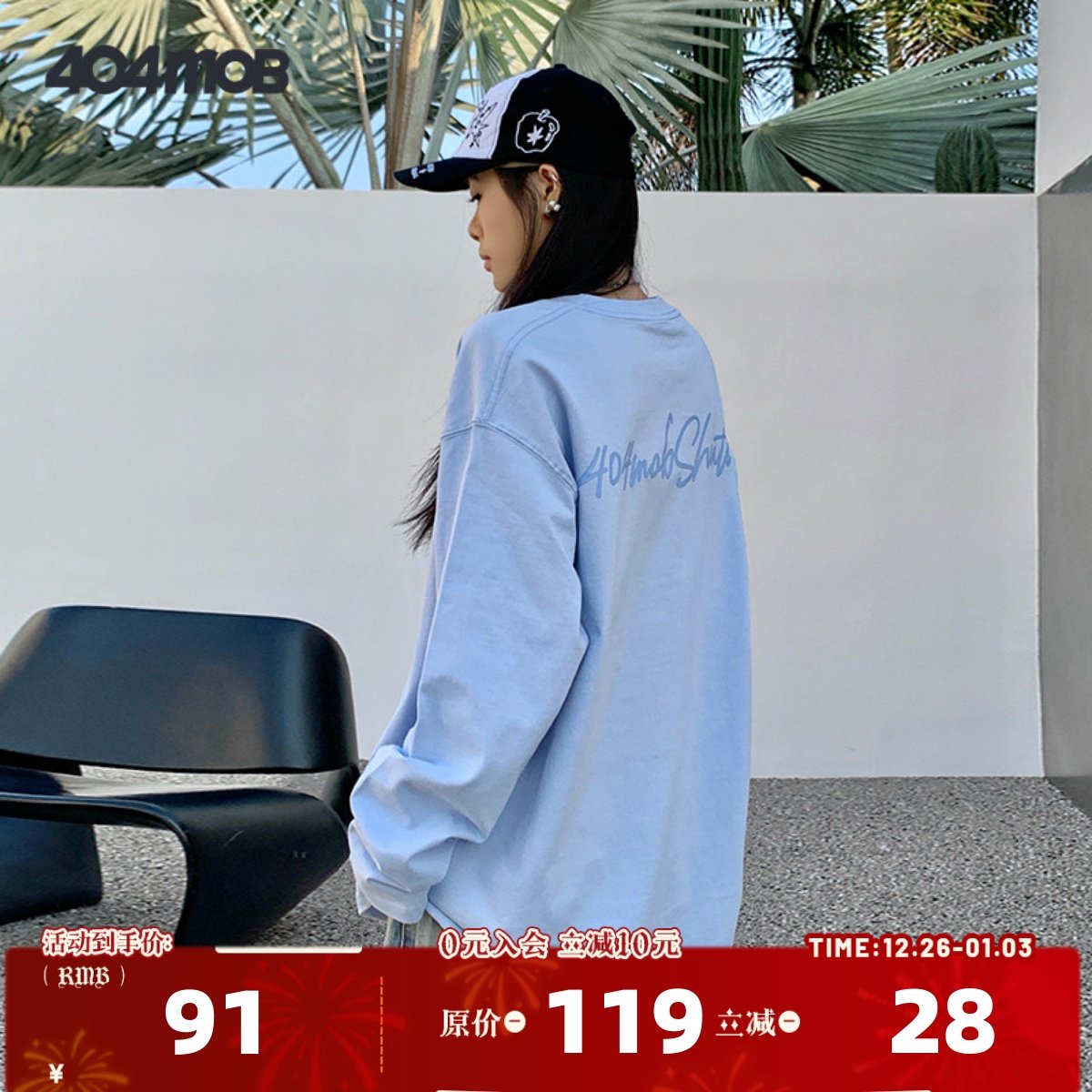 404MOB手写描边字母印花重磅长袖T恤春季男生美式潮牌情侣装上衣