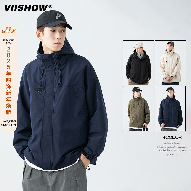 VIISHOW外套男春季日系宽松连帽上衣休闲防风冲锋夹克情侣工装夹