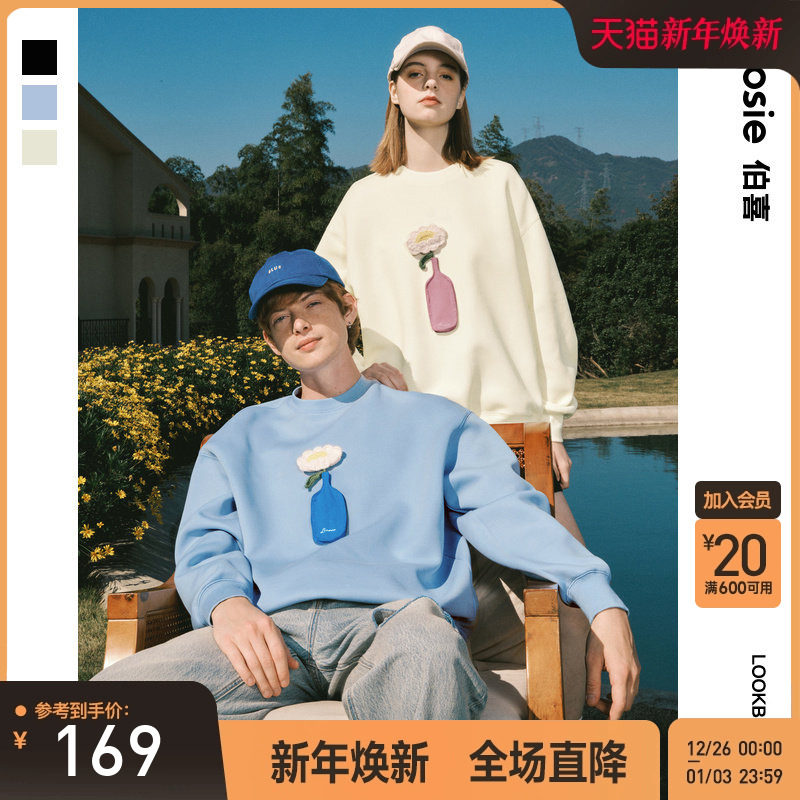 bosie2025年春季新款圆领卫衣男情侣趣味可拆卸立体花瓶装饰上衣