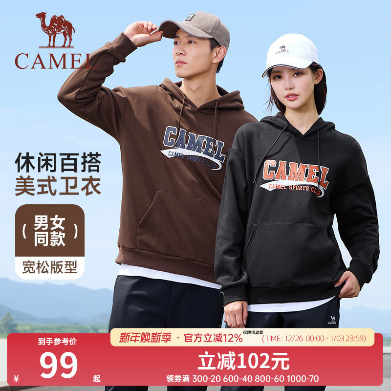 骆驼运动卫衣男女薄绒2025春季新款套头衫长袖宽松情侣连帽卫衣潮