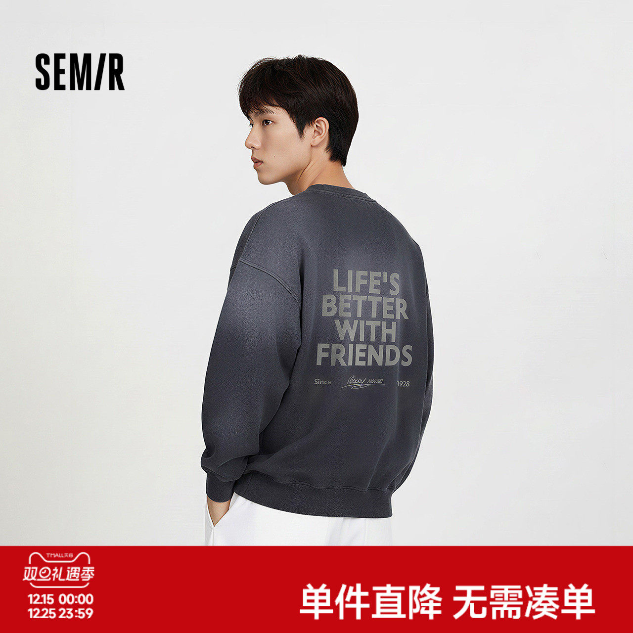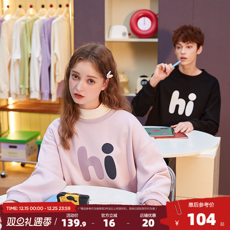 森马迪士尼合作系列卫衣男春季简约字母印花上衣情侣装圆领套头衫