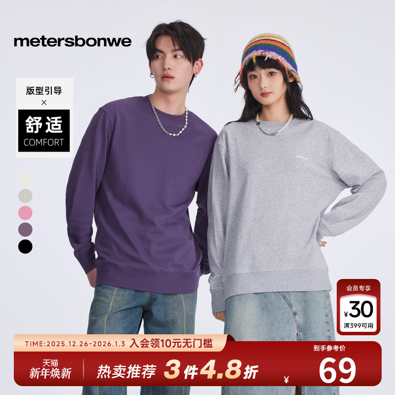 美特斯邦威卫衣男春季新款时尚舒适潮流纯色情侣装针织套头衫上衣