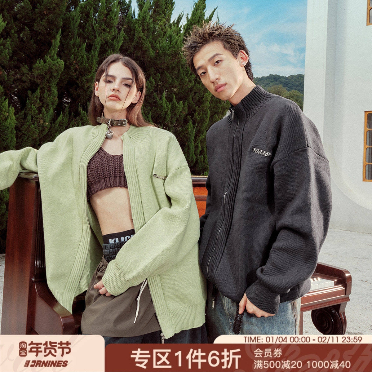 FORNINES立领cleanfit开衫毛衣外套男女情侣装潮牌春季美式针织衫