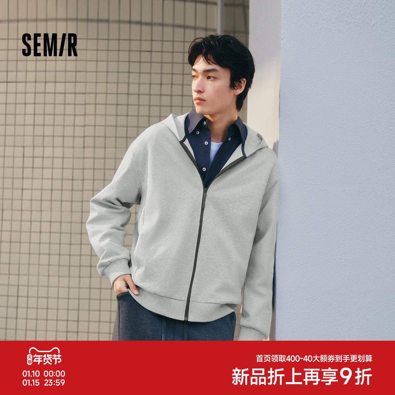 森马夹克男春季基础简约针织外套宽松连帽户外休闲上衣百搭情侣装