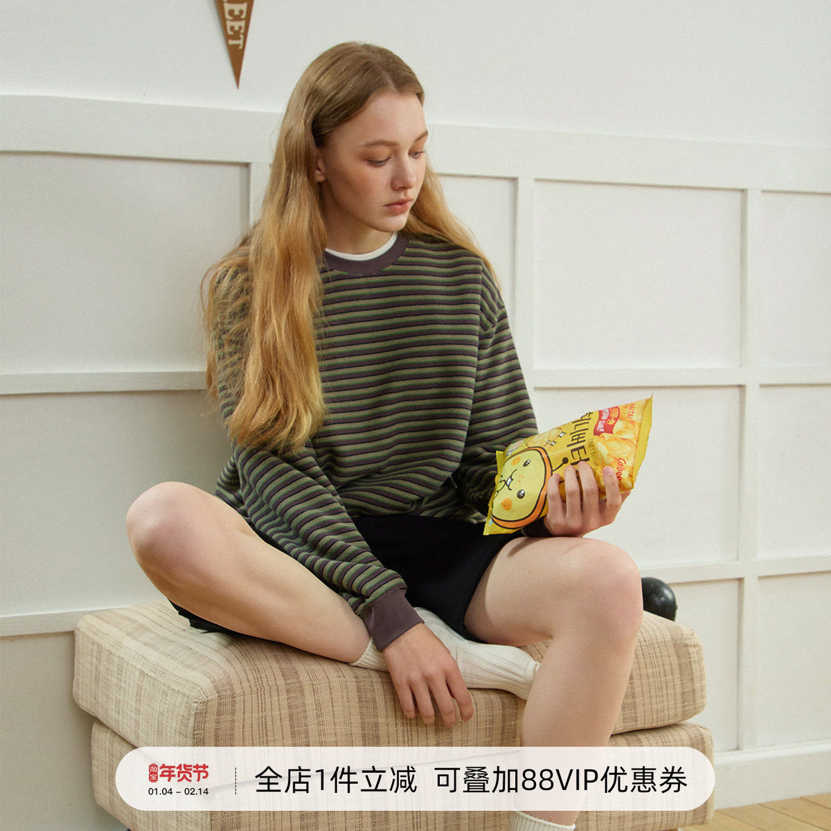 - 宽松条纹连帽卫衣