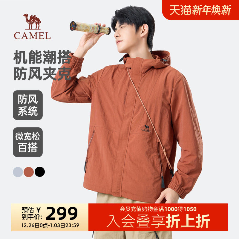 骆驼男装机能夹克2025春季新款工装外套户外防泼水情侣登山服防风