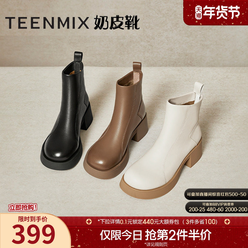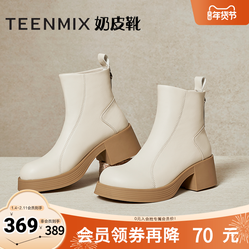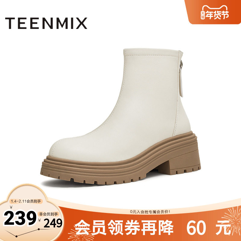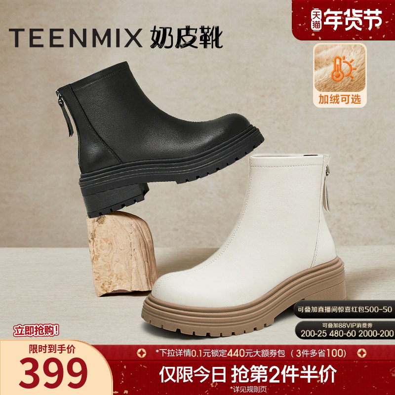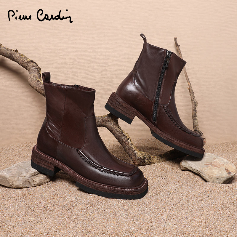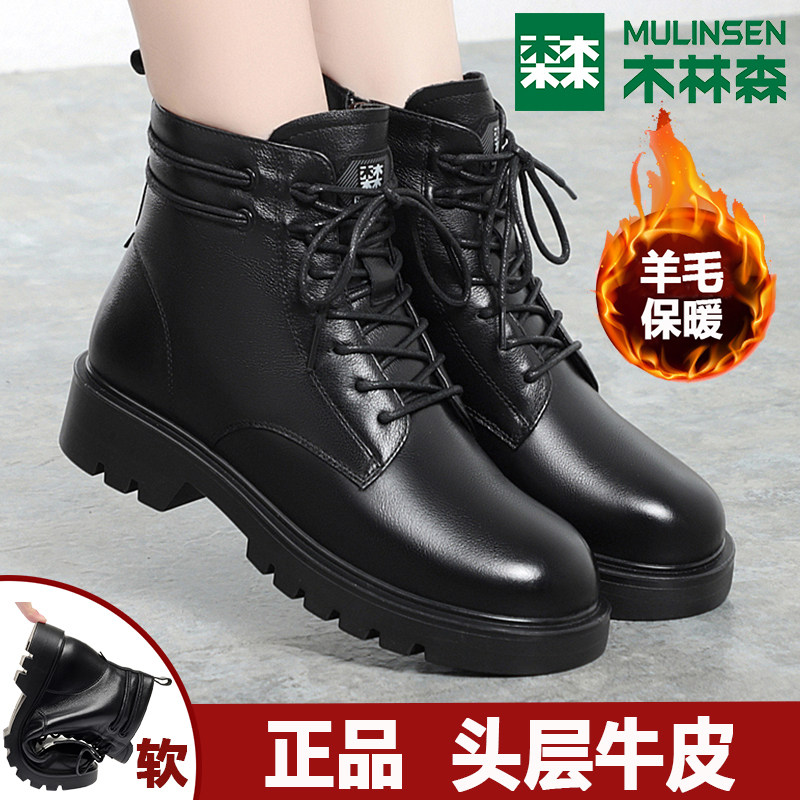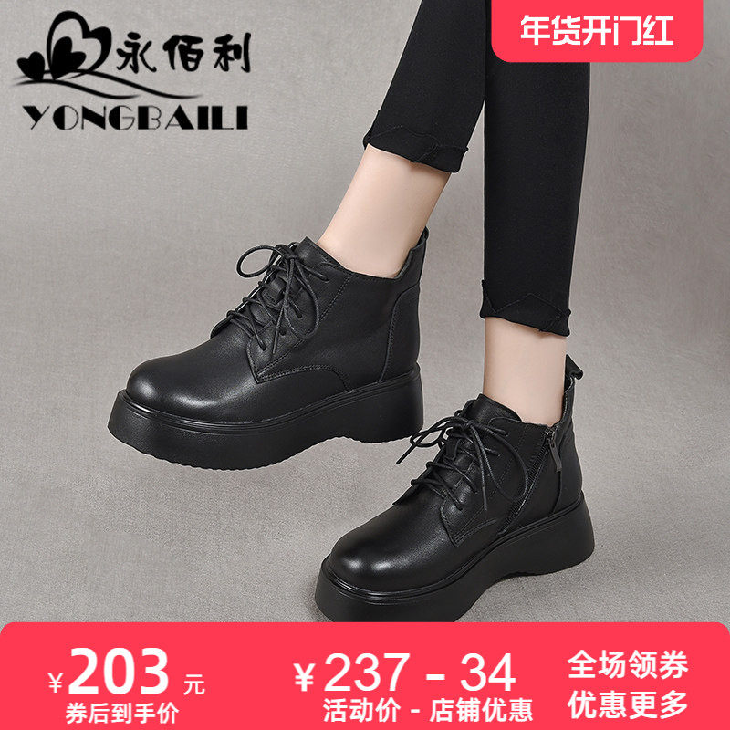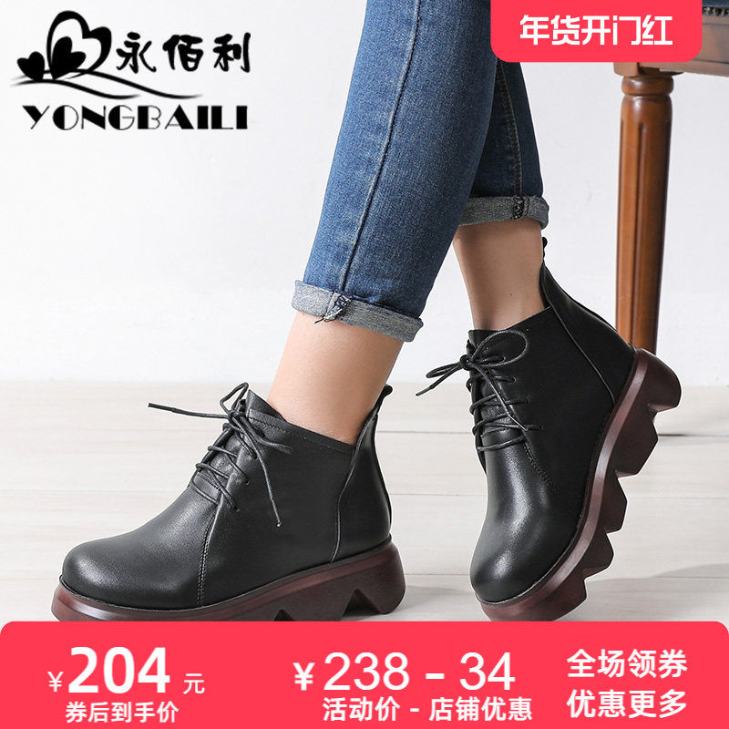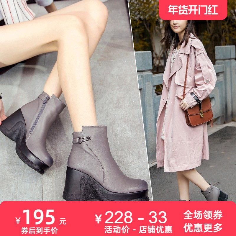 - 真皮短靴厚底女靴