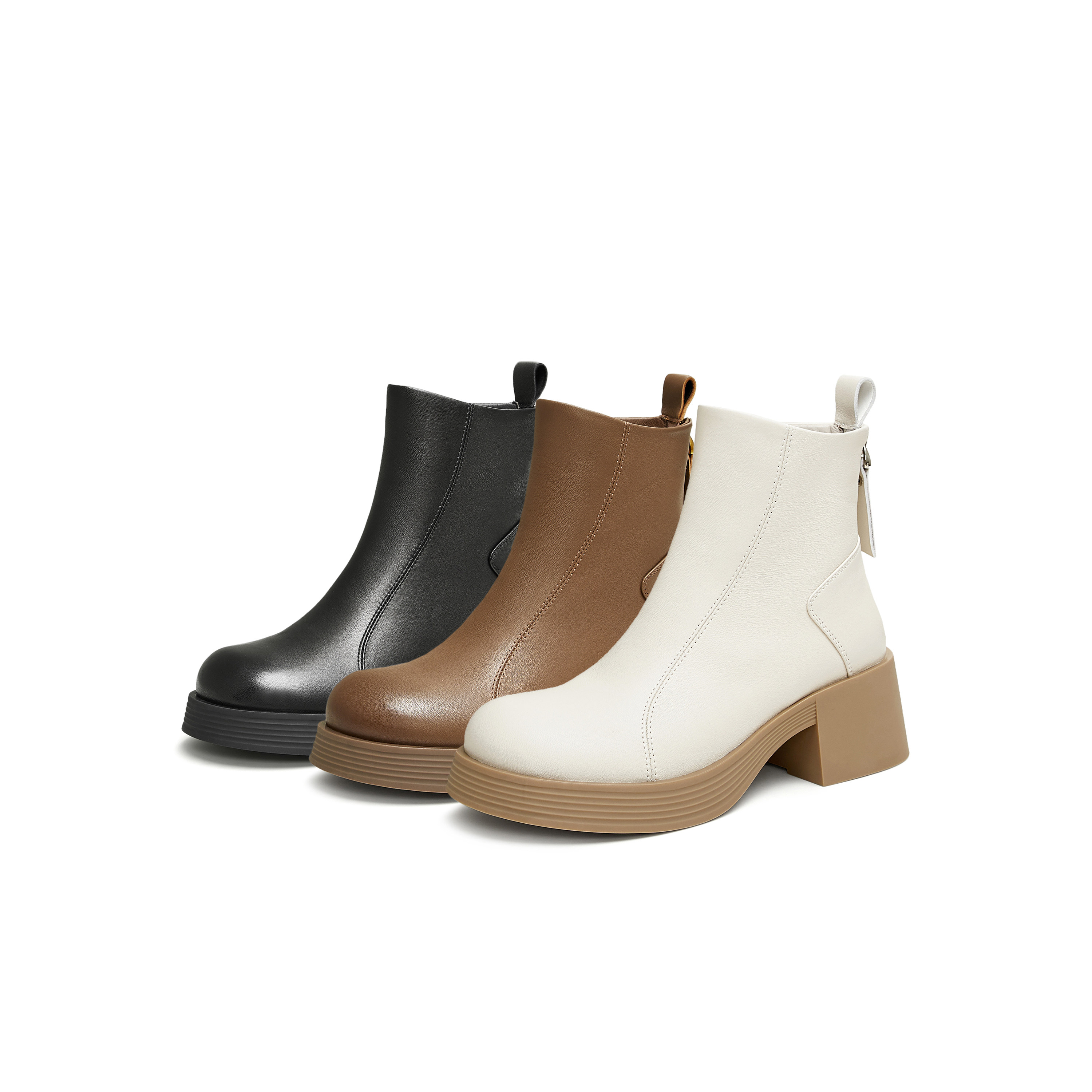 - 粗跟圆头靴