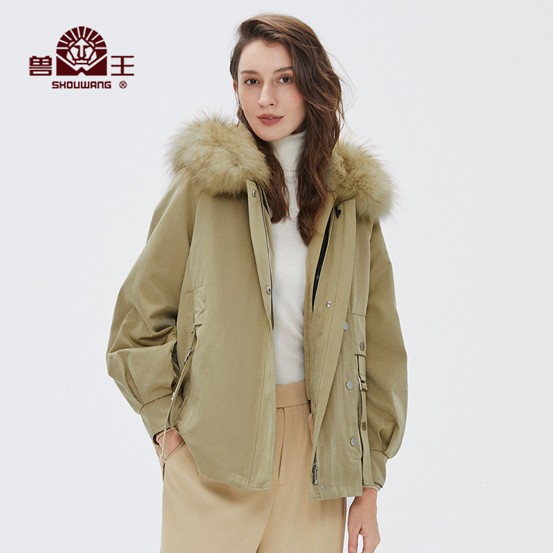 狐狸毛领派克服大衣女士白鹅绒羽绒可拆卸皮草复古工装风B2748