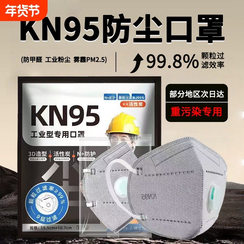 KN95口罩正品n95防尘肺重度防工业级粉尘含活性炭防甲醛打磨专用