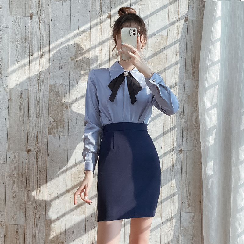 职业套装女套裙洋气时髦长袖衬衫春秋新款正装高端前台接待工作装