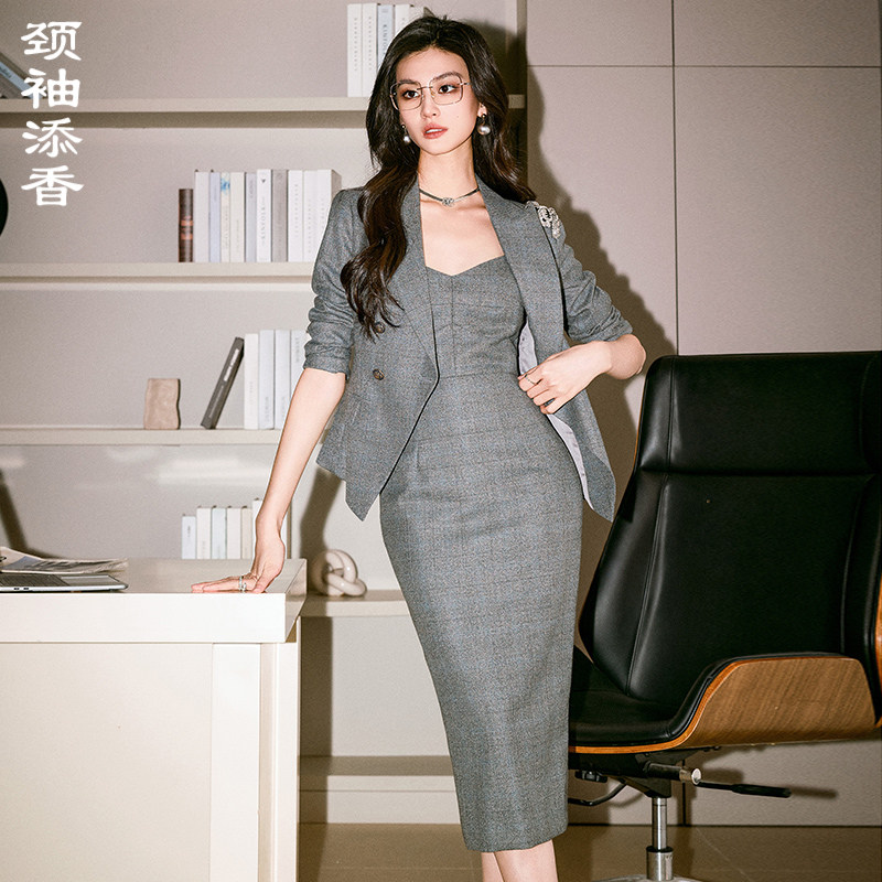 西装套装女春秋主持人职业气质女神范时尚套裙西服外套职业连衣裙