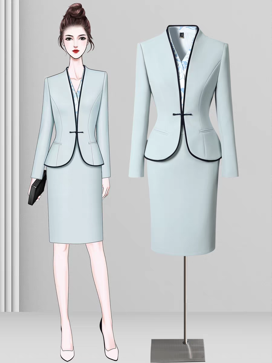 空姐职业套装女春秋新中式国风西装套裙酒店前台工装美容院工作服
