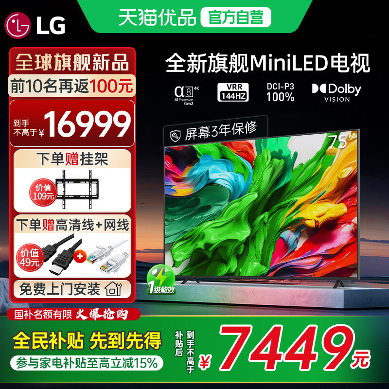 【换新补贴】LG MiniLED智能家用平板电视 65/75/86英寸 全通道4K