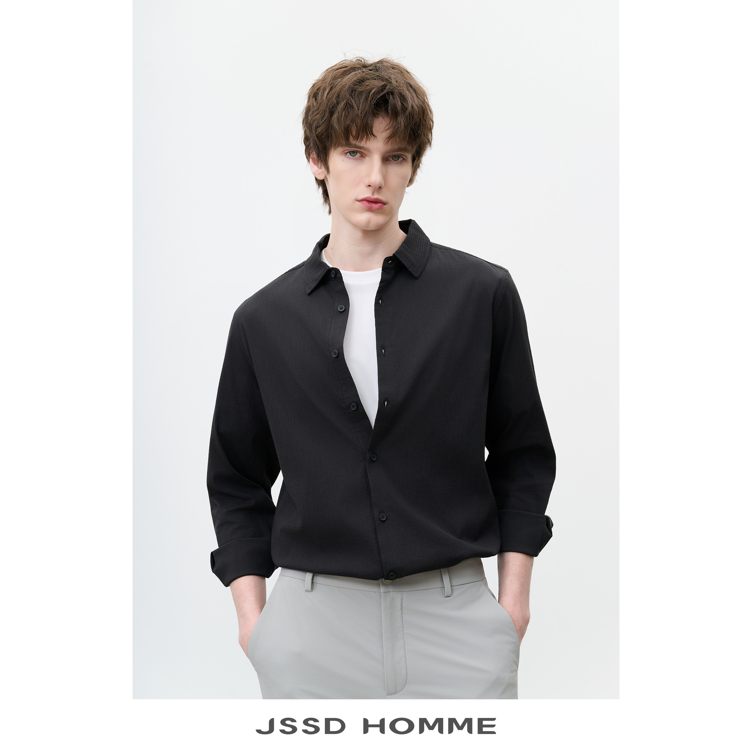 JSSD HOMME 春季泡泡纱开衫长袖衬衫男士衬衫商务通勤休闲衬衣男