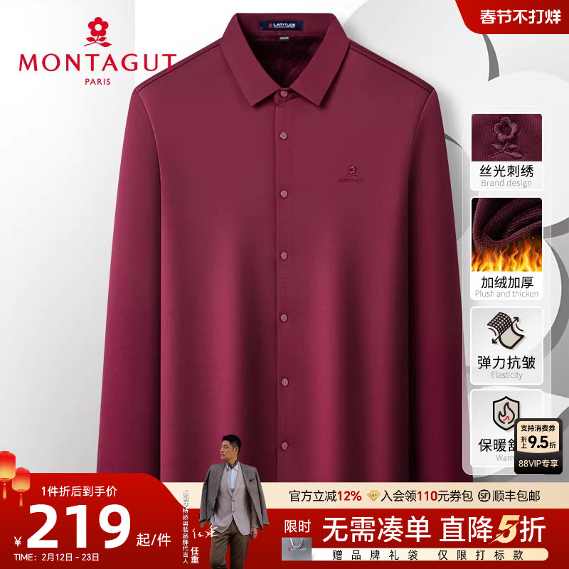 [免烫抗皱/加绒加厚]梦特娇冬新款男士衬衫长袖商务休闲衬衣保暖J