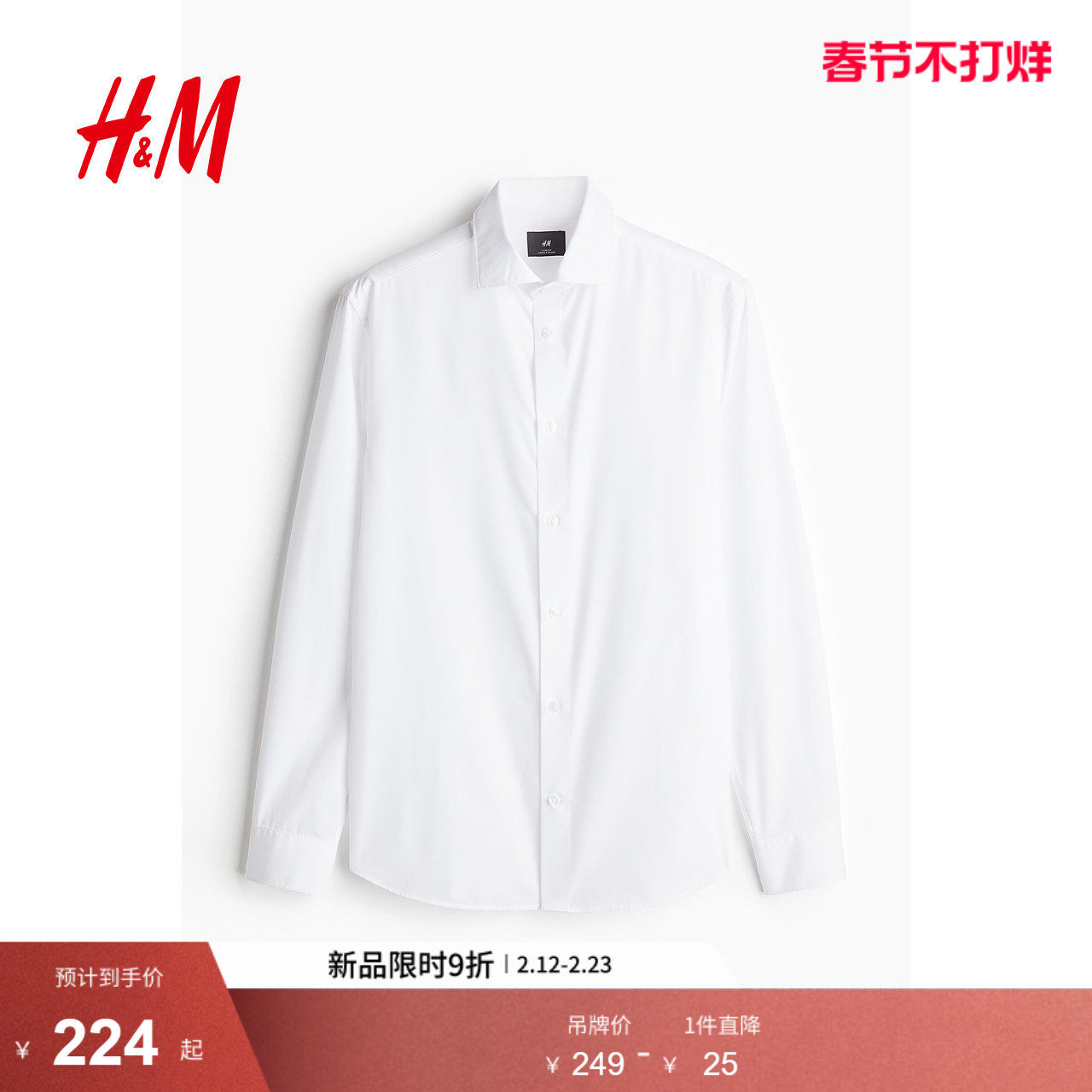 HM男士衬衫春季通勤合身版型基础款易熨烫长袖衬衣1254614