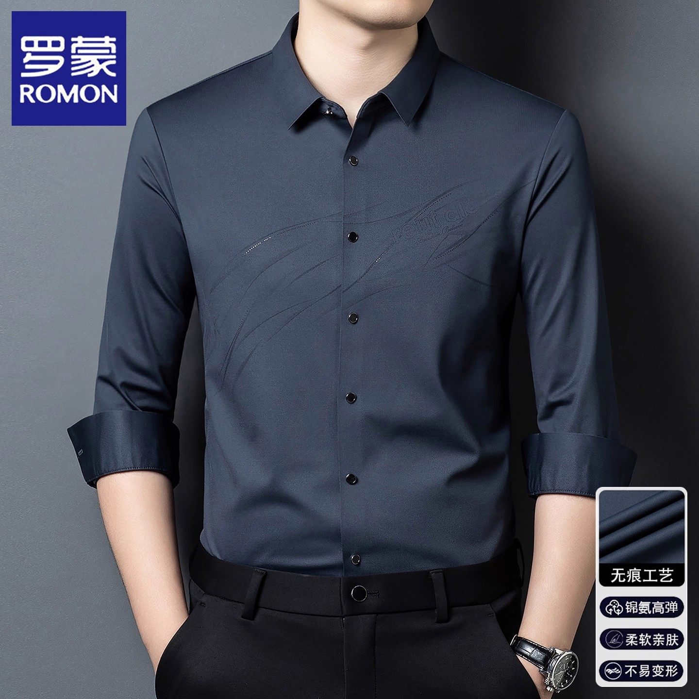 罗蒙无痕弹力衬衫男长袖秋冬季新款垂感商务休闲免烫中年衬衣男士