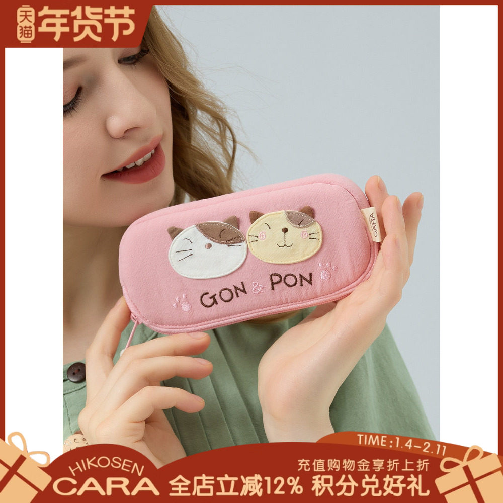 HIKOSEN CARA卡拉猫小拱小胖手拿包拉链百搭眼镜袋包女长款钱包