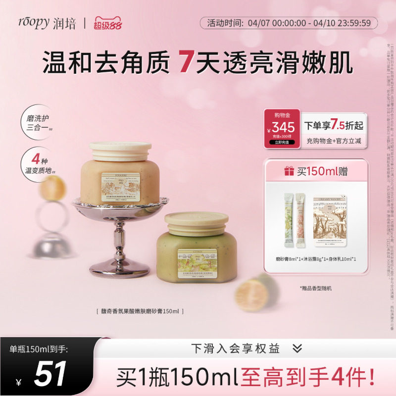 润培roopy果酸身体磨砂膏沐浴露二合一手部清洁去角质死皮浴盐女
