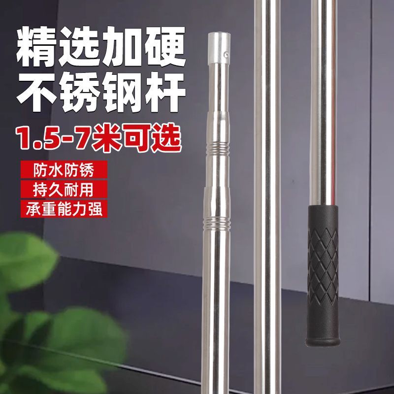 多功能伸缩杆1.5-7米不锈钢伸缩杆抄网杆鱼叉杆摘果杆白钢伸缩杆