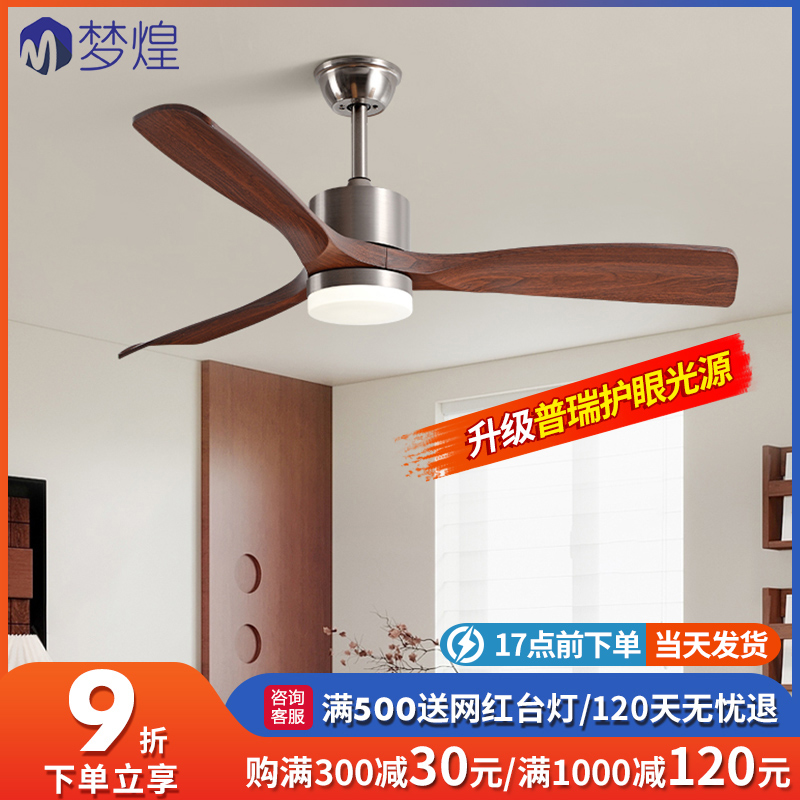 复古风扇灯胡桃木色吊扇灯北欧客厅灯卧室灯餐厅新中式古铜色实木