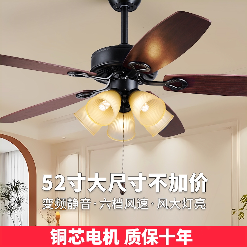 飞朵复古风扇灯新中古吊扇灯餐厅客厅卧室变频电扇灯美式风扇吊灯