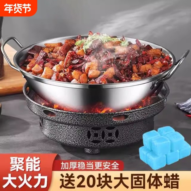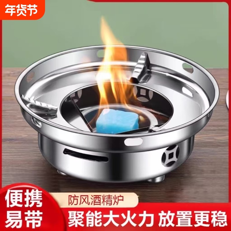干锅锅具不锈钢防风酒精炉户外家用小火锅商用酒精块饭店便携炉子