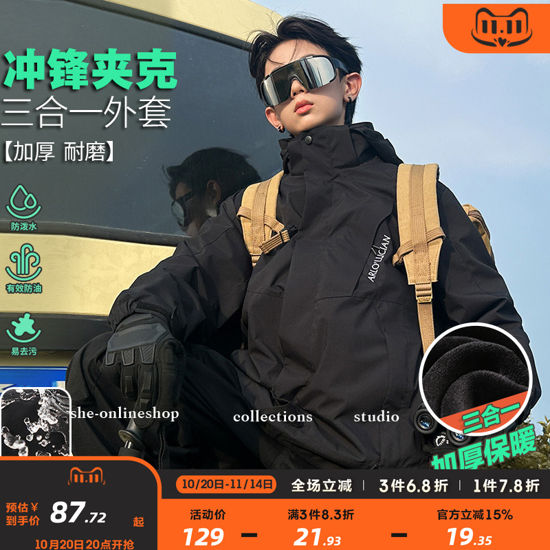 男童冲锋夹克外衣三合一秋装加绒加厚秋冬外套儿童防水登山服潮牌