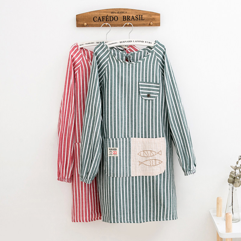 文艺撞色防水罩衣包邮纯棉布长袖围裙学生画画防油污家用厨房男女