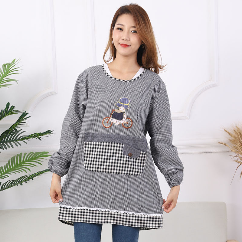 罩衣成人女包邮厨房韩版时尚家用围裙长袖防油防水工作服纯棉定制