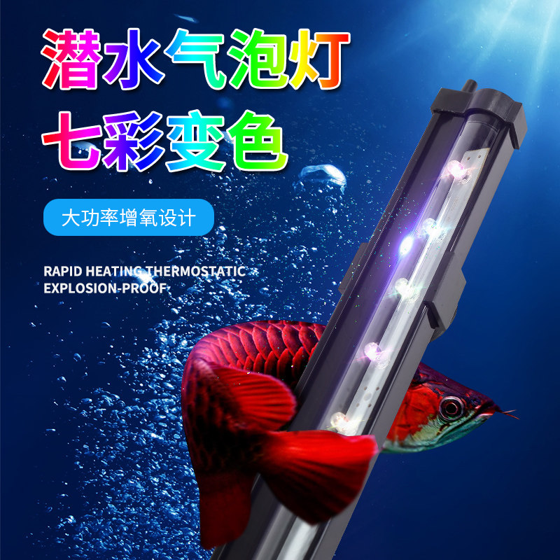 鱼缸灯气泡灯LED造景装饰灯氧气泵水族灯七彩慢变增氧潜水照明灯