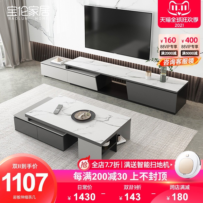 极简岩板电视柜茶几组合套装客厅家用小户型可伸缩电视柜成套家具
