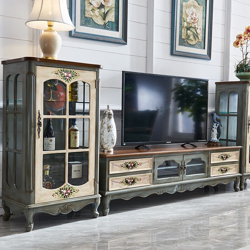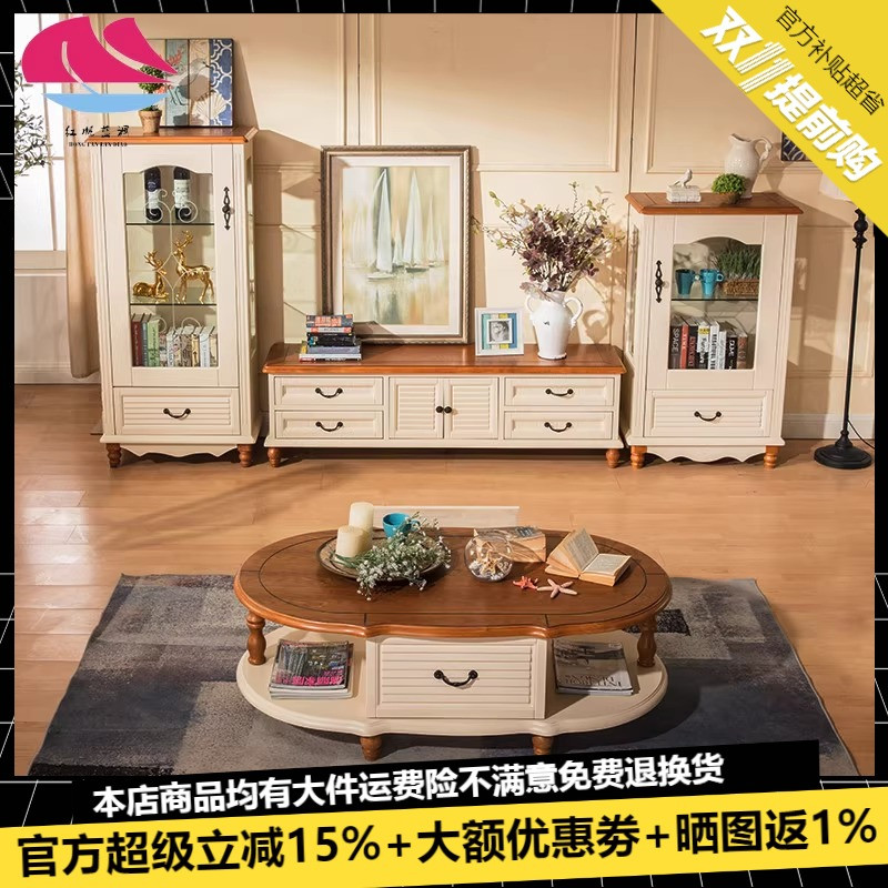 地中海风格客厅成套家具实木高低酒柜组装美式茶几电视柜组合套装