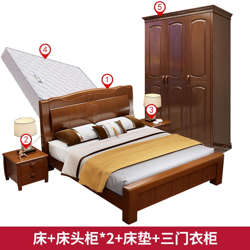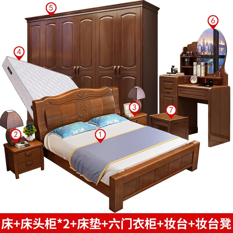 卧室家具套装组合床衣柜梳妆台婚房主卧全屋成套中式实木家私全套