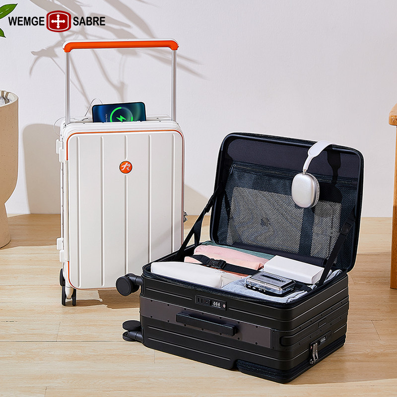 2025军刀拉杆箱宽拉杆行李箱多功能前开盖旅行箱侧开商务登机箱女