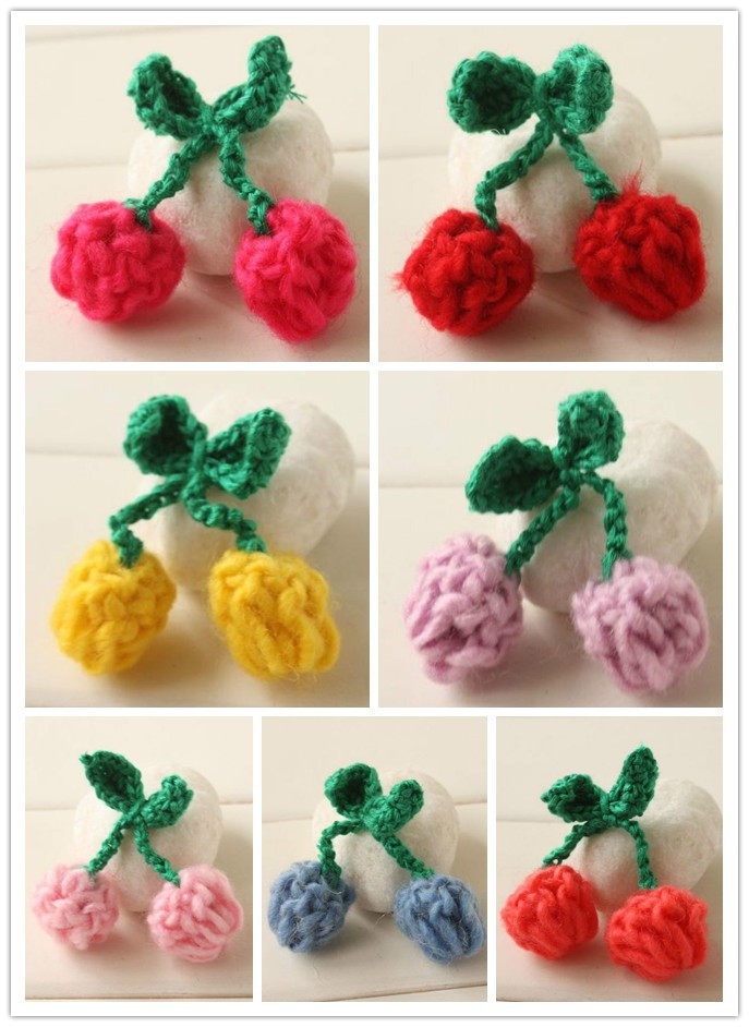 糖果卖花布 小樱桃毛线钩花装饰布艺手工儿童服装头花发饰DIY辅料