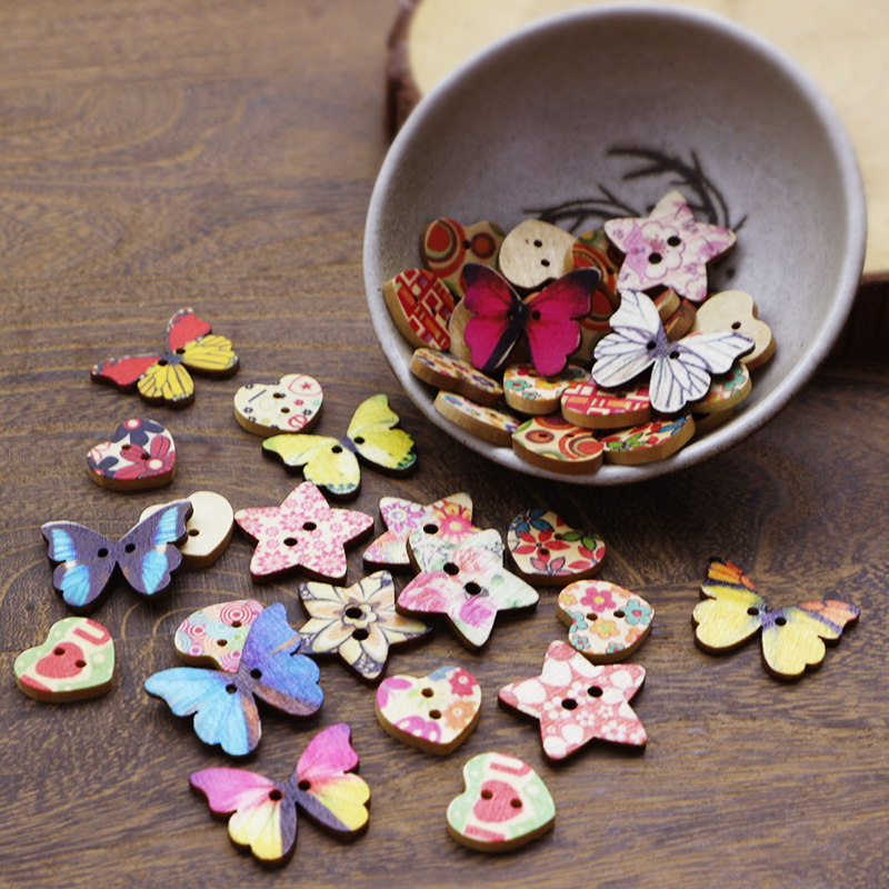 糖果卖花布 10颗彩绘木制纽扣扣子衬衫连衣裙儿童服装手工DIY辅料