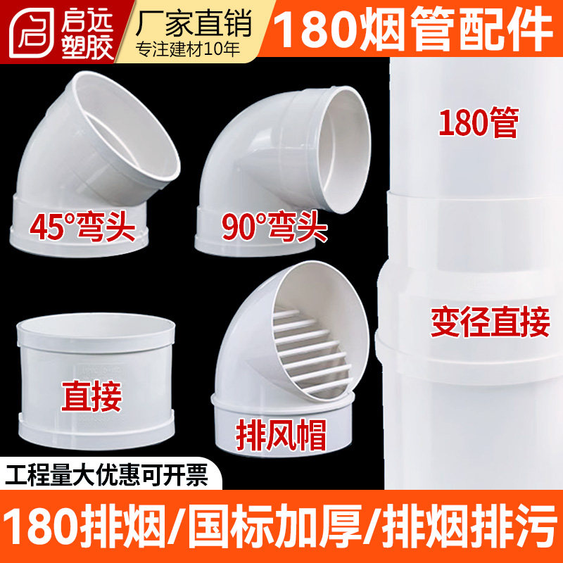 PVC排水管烟管180160管排烟排水直接弯头三通直弯头150管道配件