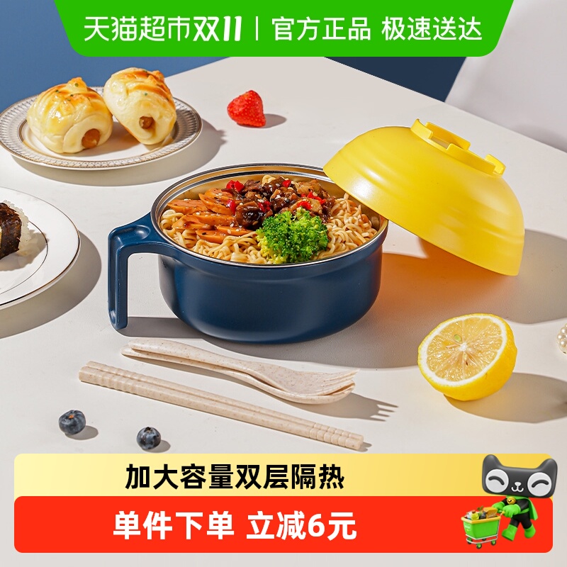 不锈钢泡面碗宿舍用学生带盖碗方便面碗个人专用带手柄大容量饭盒