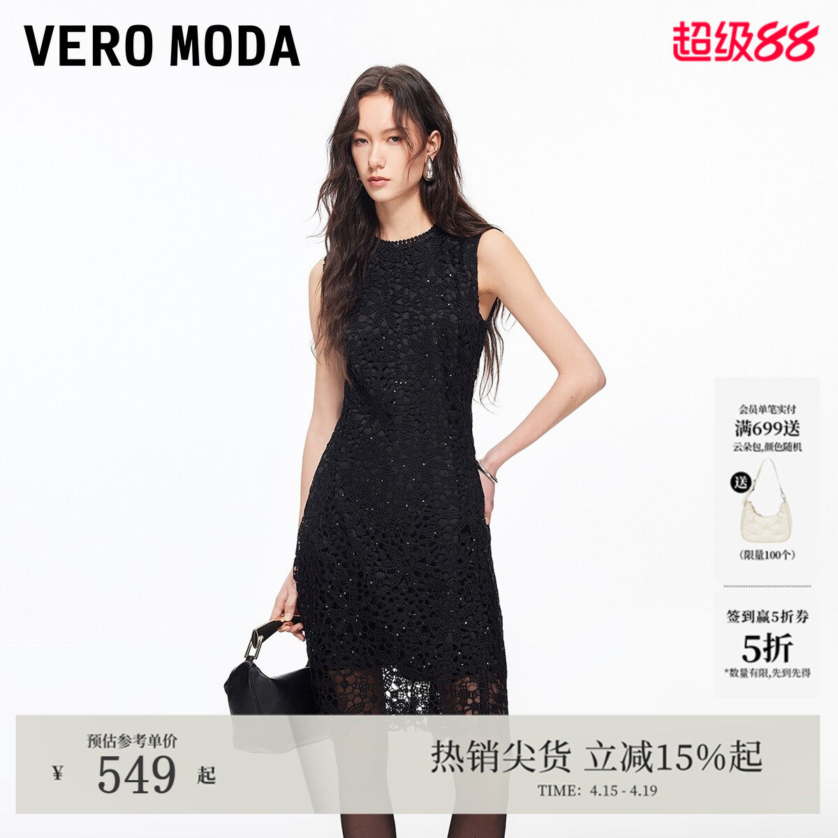 Vero Moda连衣裙2026夏季新款蕾丝亮片修身无袖A字中长裙优雅大气