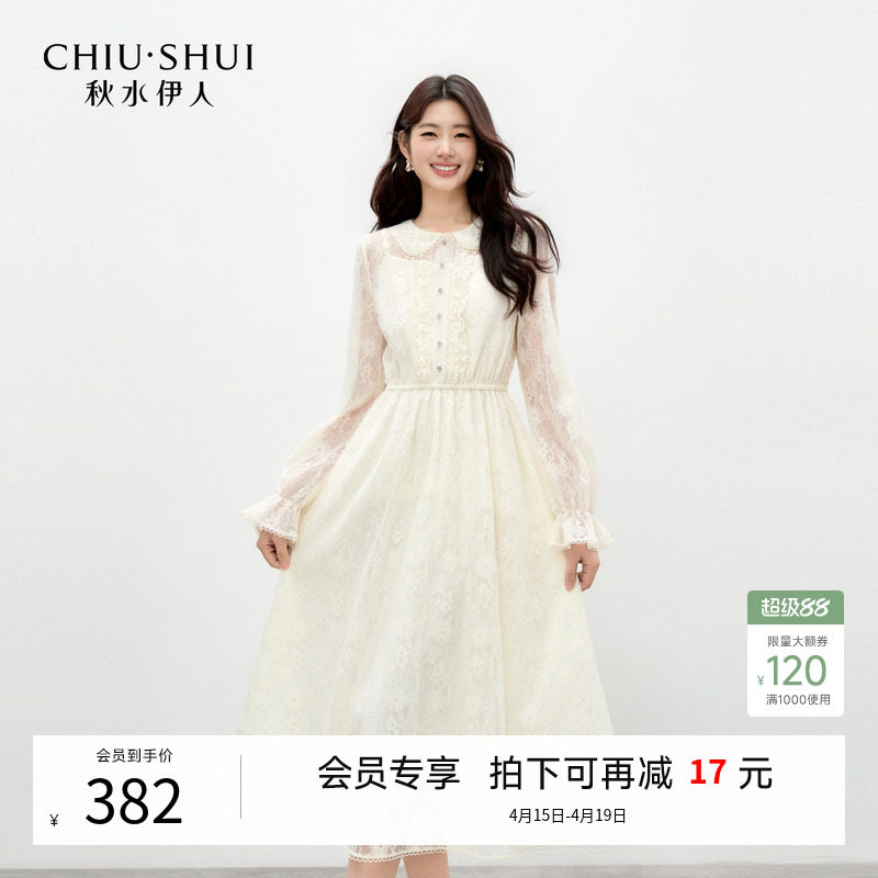 秋水伊人温柔蕾丝娃娃领连衣裙2026年春季新款气质优雅收腰中长裙