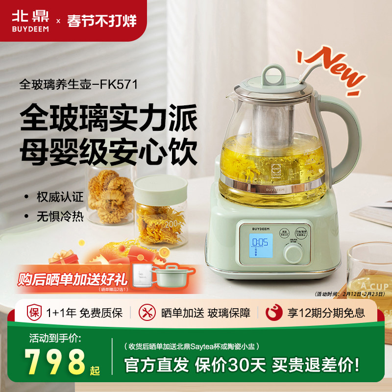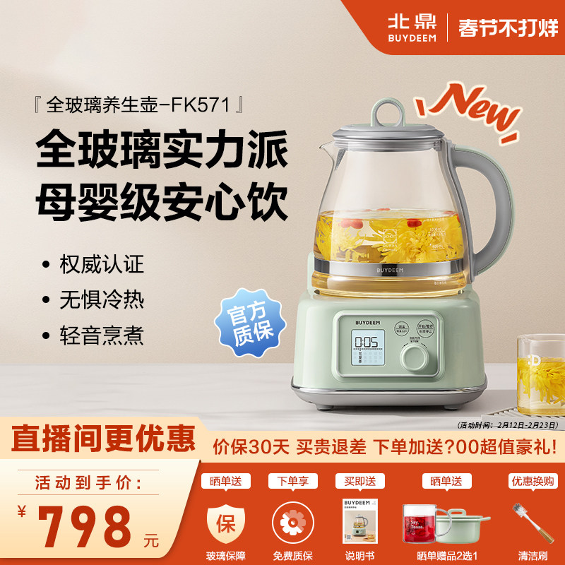 by 北鼎全玻璃养生壶FK571旗舰店官方正品1.2L煮茶壶恒温多功能