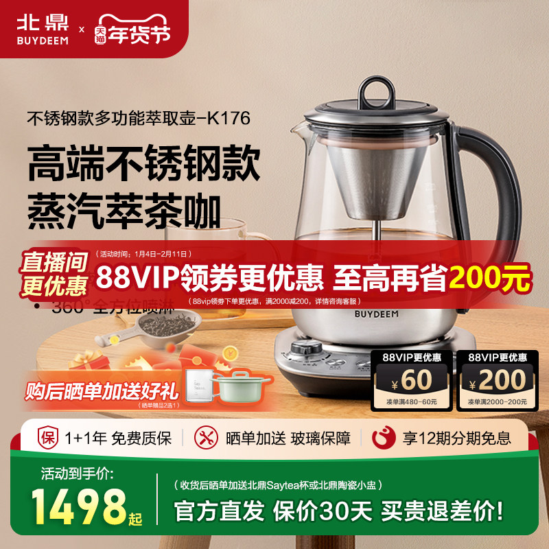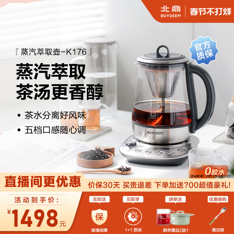 北鼎养生壶K176多功能家用煮茶壶办公室喷淋煮茶器保温蒸汽萃取壶