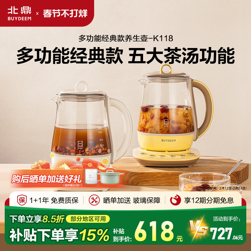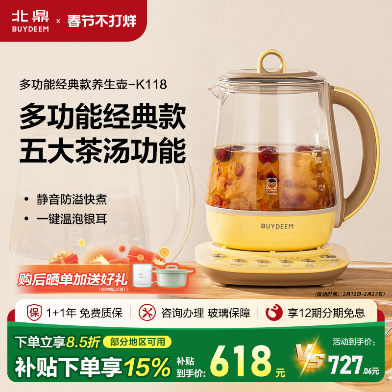 【补贴15%】北鼎养生壶K118多功能煮茶器温泡烹煮银耳花果茶1.5L