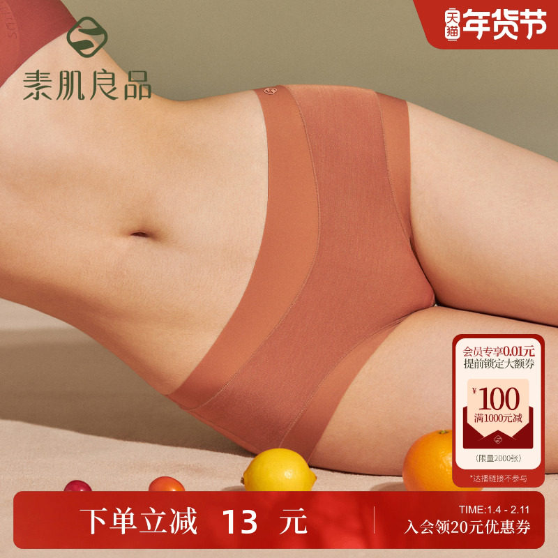3件|蕉内银皮500E女士内裤无痕透气亲肤红真丝莫代尔三角裤大码女