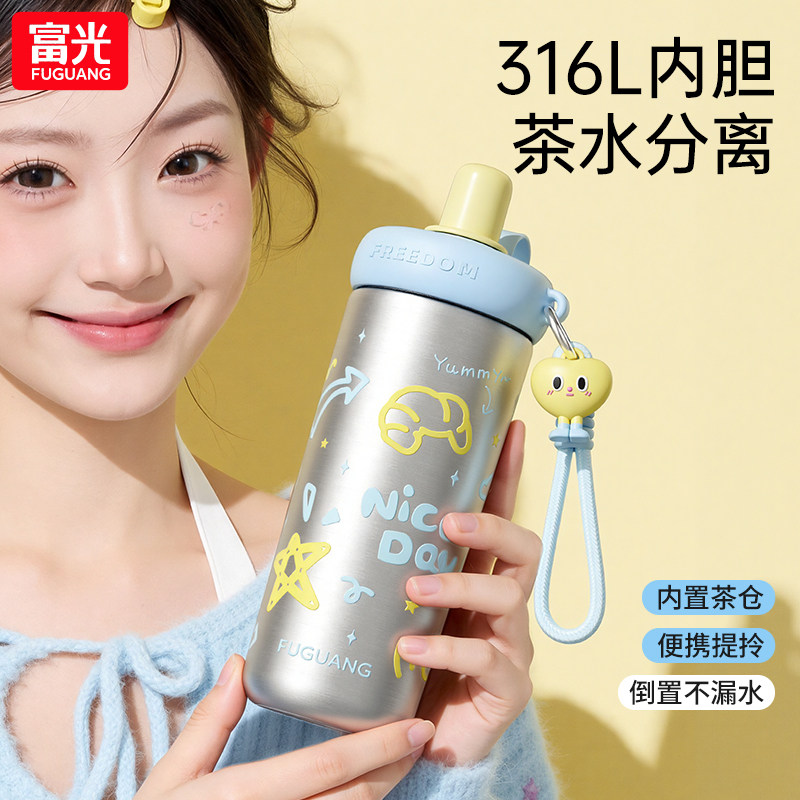 富光吸管保温杯女生高颜值316L不锈钢水杯大容量杯子学生便携新款