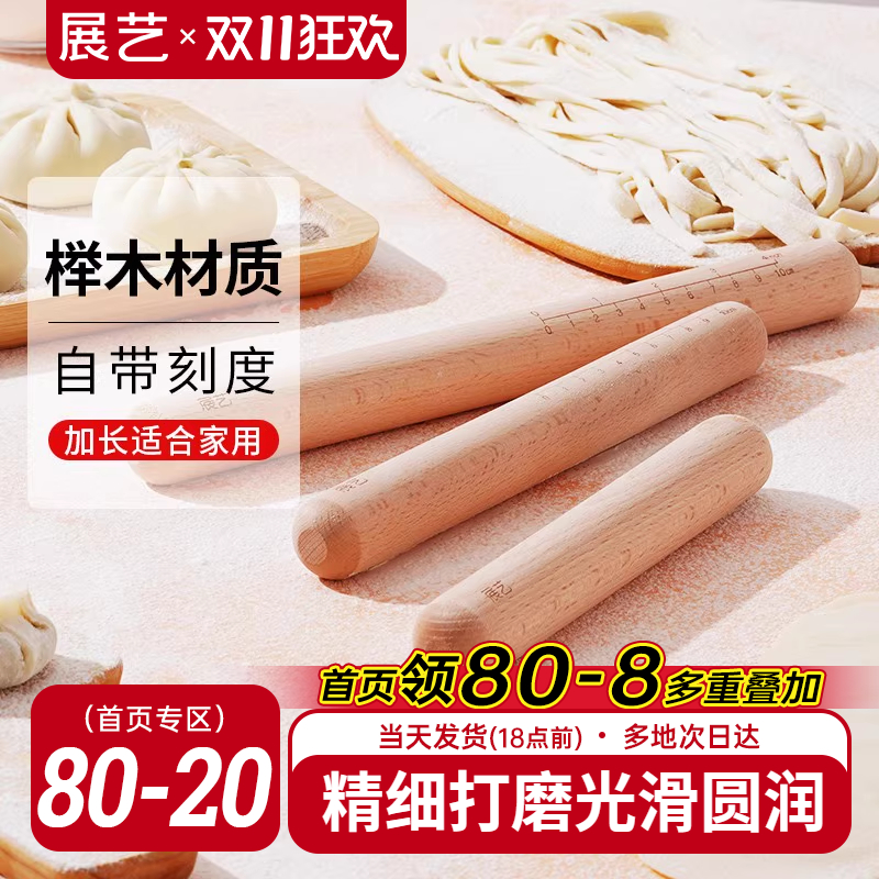 展艺实木家用擀面杖揉面垫雪媚娘饺子皮冰皮广式月饼专用烘焙工具