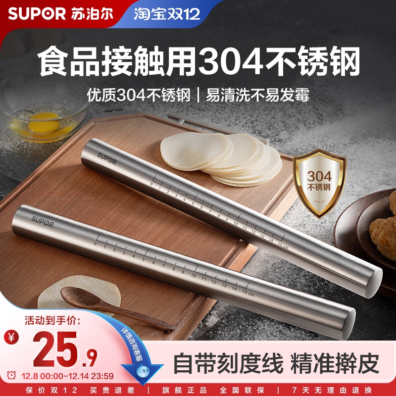 苏泊尔不锈钢擀面杖家用不粘食品级擀饺子皮神器赶面棍子大号烘焙