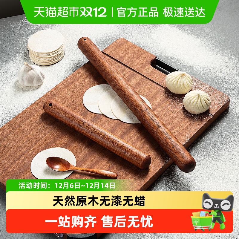 树可花梨木擀面杖家用食品级儿童不粘大号实木擀面条饺子皮三件套